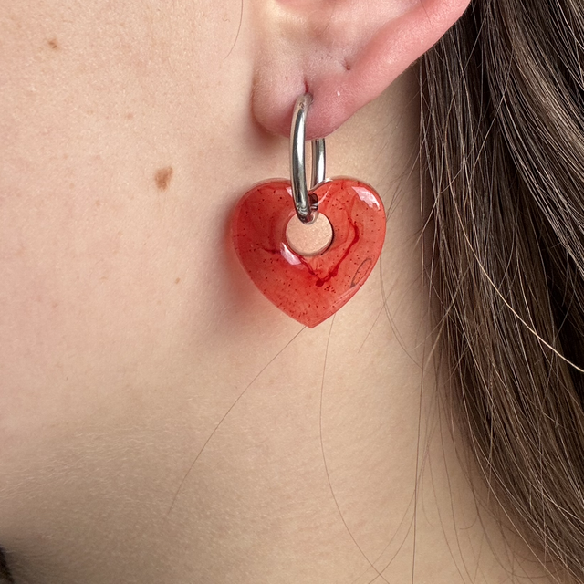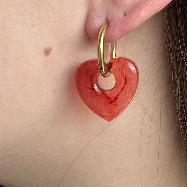 Boucles d’oreilles composées de pampilles en résine époxy et de créoles en acier inoxydable. Elles s’harmonisent parfaitement avec les vêtements proposés sur le site.