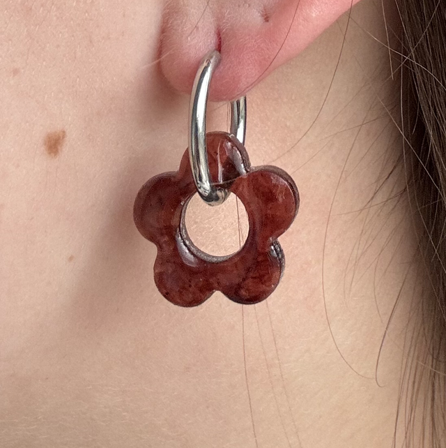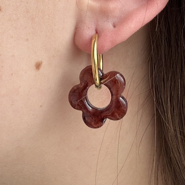 Boucles d’oreilles composées de pampilles en résine époxy et de créoles en acier inoxydable. Elles s’harmonisent parfaitement avec les vêtements proposés sur le site.